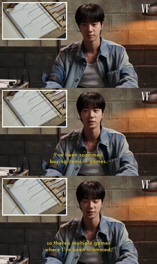 최근 베니티 페어 유튜브 채널에서는 진이 거짓말 탐지기 인터뷰를 진행하는 모습이 담긴 영상이 공개됐다.