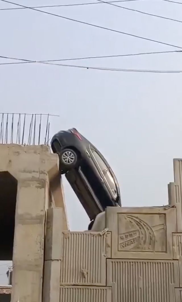이후 차량은 교량에서 떨어졌으며, 온라인상에 퍼진 영상에는 차량이 미완공된 구조물에서 걸쳐진 채 앞부분이 모래 더미에 박힌 모습이 담겨 있다. 운전자는 혼자 힘으로 차량에서 빠져나오지 못했고, 인근 주민들이 구조대에 신고한 후에야 간신히 차량에서 구조됐다. 다행히 운전자에게 큰 부상은 없었다.