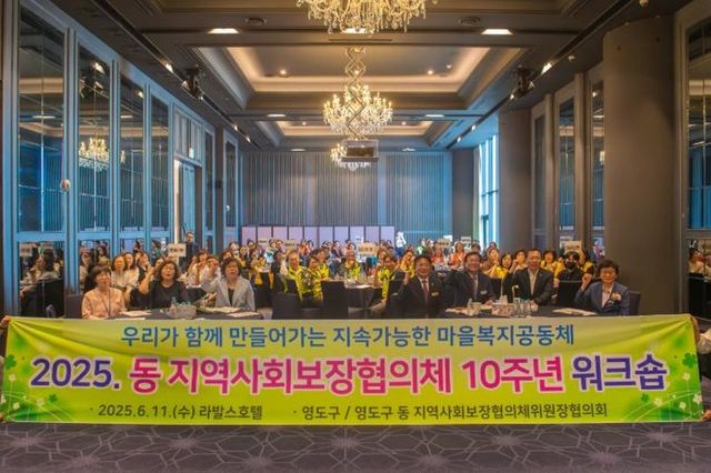 [파이낸셜경제=김영란 기자] 부산시 영도구와 영도구 동 지역사회보장협의체 위원장 협의회는 6월 11일 라발스호텔에서 동 지역사회보장협의체 위원 및 내빈 등 120여명이 참석한 가운데‘2025 동 지역사회보장협의체 10주년 워크숍’을 개최했다.