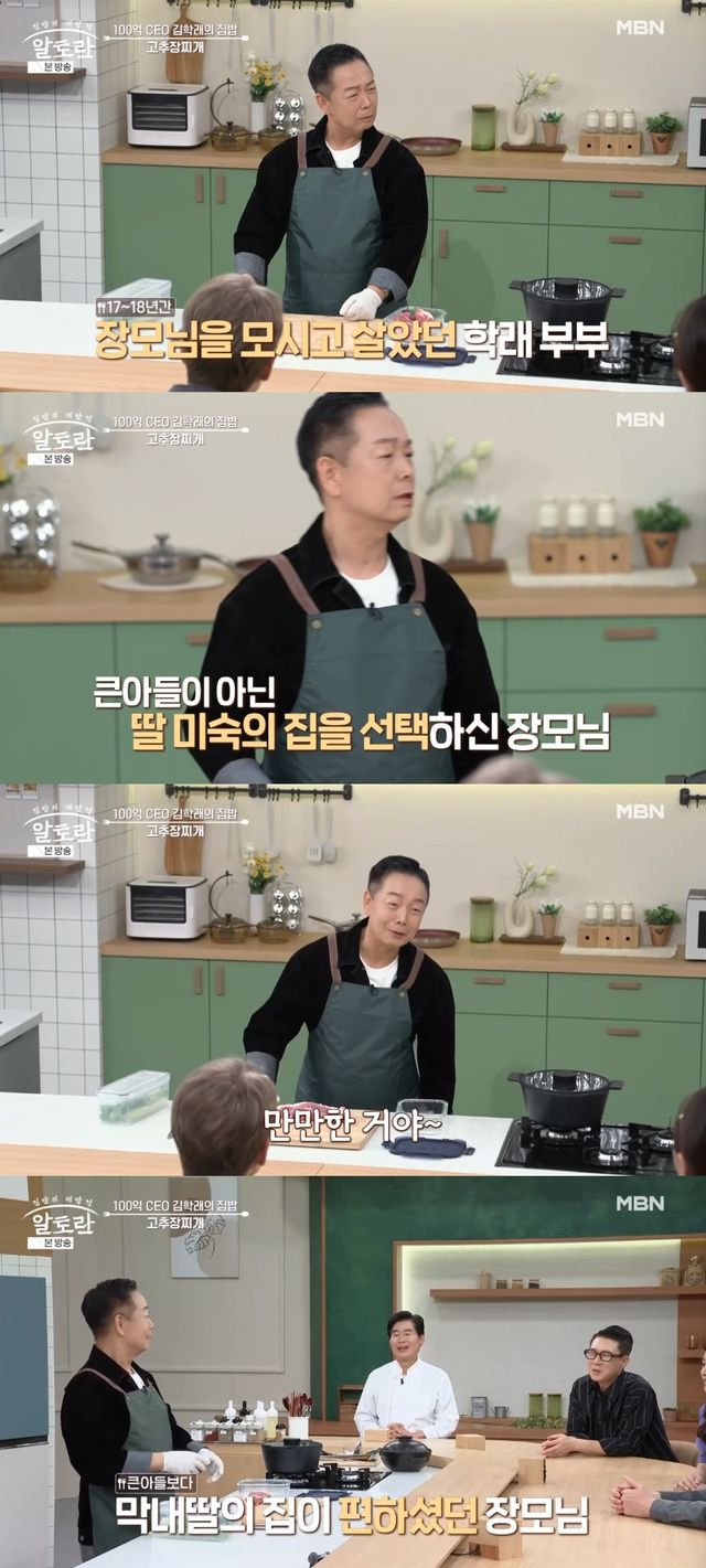 김학래는 장모님을 17~18년간 모시고 살았다고. 그는 "큰아들네 집이 부자다. 근데 이미숙 씨 집으로만 온다. 막내딸네가 만만한 거다. 마음대로 냉장고 열고, 뭐 싸서 조카들 오라고 해서 주고 이러는 걸 좋아하신다"며 딸의 집을 편해하는 장모님을 언급했다.