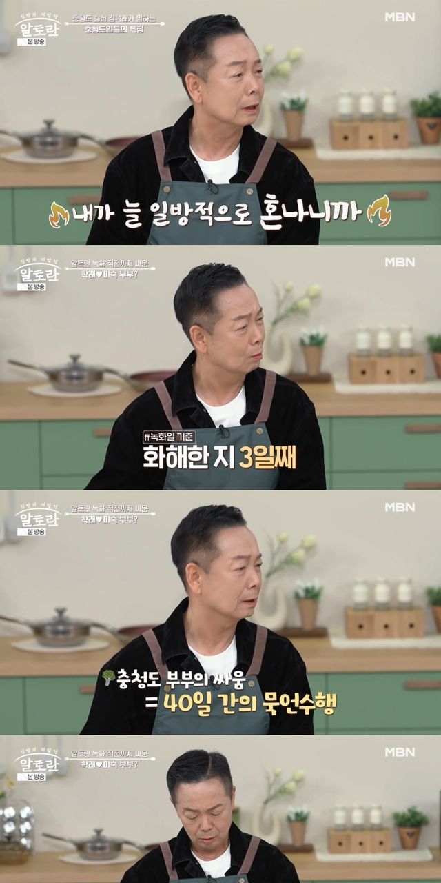 김학래는 "솔직히 얘기하는데, 내가 막 화가 나서 얘기를 쏘아붙였다"면서 "냉랭하게 찬 바람 불면서 서로 말도 안 하고 이게 풀린 지 3일 됐다. 한 40일 말 안 했다"고 밝혀 모두를 깜짝 놀라게 했다.
