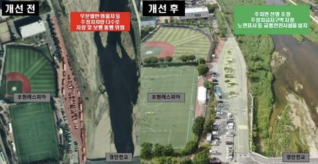 구는 해당 구간의 주차장면을 조정하고 노면 표시를 정비했으며, 교통안전표지판 설치를 통해 해당 지역을 주정차금지구역으로 지정했다. 특히 모현레스피아 앞 도로의 시야 확보가 크게 개선되면서 차량과 보행자 간 충돌 위험을 줄였다.
