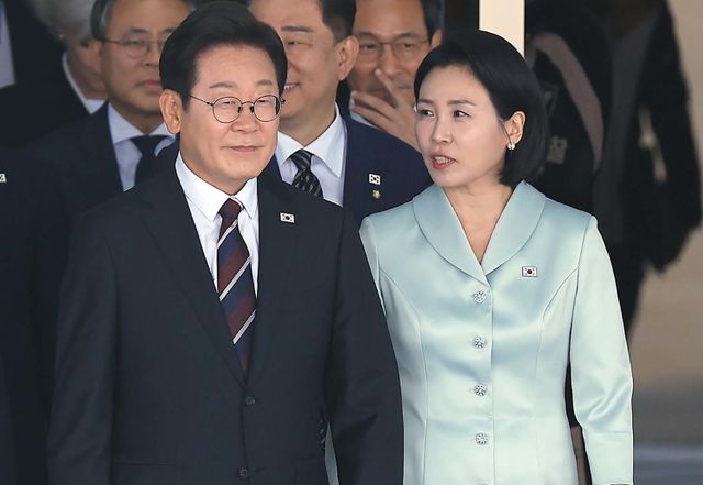 이재명 대통령과 부인 김혜경 여사가 캐나다에서 열리는 주요7개국(G7) 정상회의 참석을 위해 16일 오후 경기도 성남 서울공항을 통해 출국하고 있다. 역대 대통령 가운데 가장 빠른 취임 12일 만의 첫 해외 방문에 나서는 이 대통령은 의장국인 캐나다의 공식 초청에 따라 옵서버(참관국) 자격으로 G7 확대회의에 참석한다. / 뉴스1