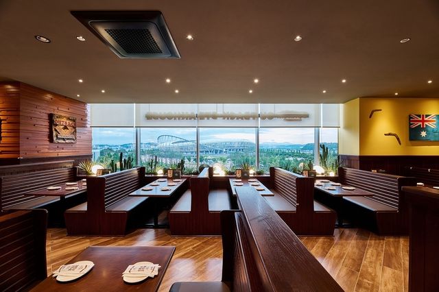 총 214석, 50개 테이블 규모로 조성된 이번 매장은 아웃백 고유의 브랜드 감성을 담은 인테리어가 특징이다. 외관에는 아웃백의 시그니처 디자인인 그린 캐노피를 적용하고, 내부는 호주의 와이너리와 사막, 해변 풍경에서 영감을 받은 부메랑형 구조와 액자 연출을 통해 감각적인 분위기를 연출했다.