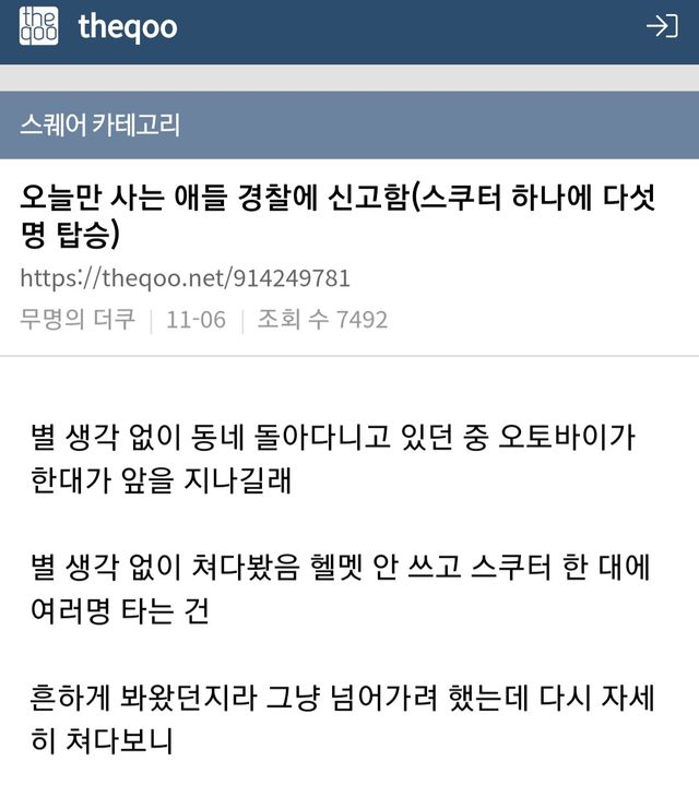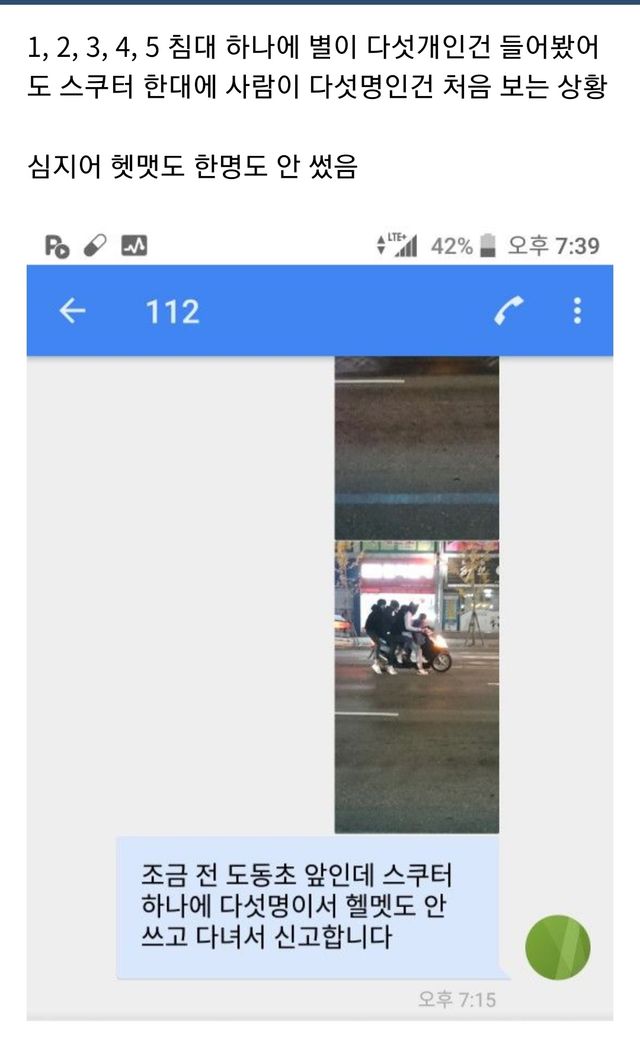 오늘만 사는 애들 경찰에 신고함(스쿠터 하나에 다섯명 탑승)