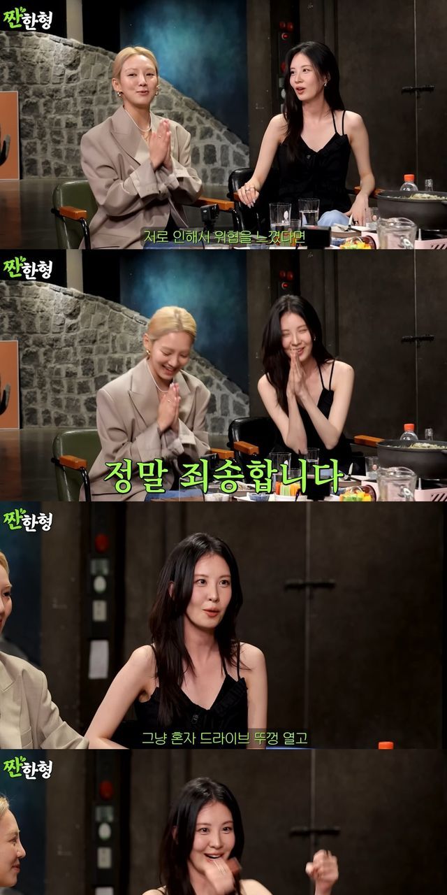 이어 효연은 "사과하자. 저로 인해 위협을 느꼈다면 죄송하다. 지금 안 그런다"고 고개를 숙였고 서현 "저도 죄송해요"라고 함께 사과해 웃음을 안겼다.