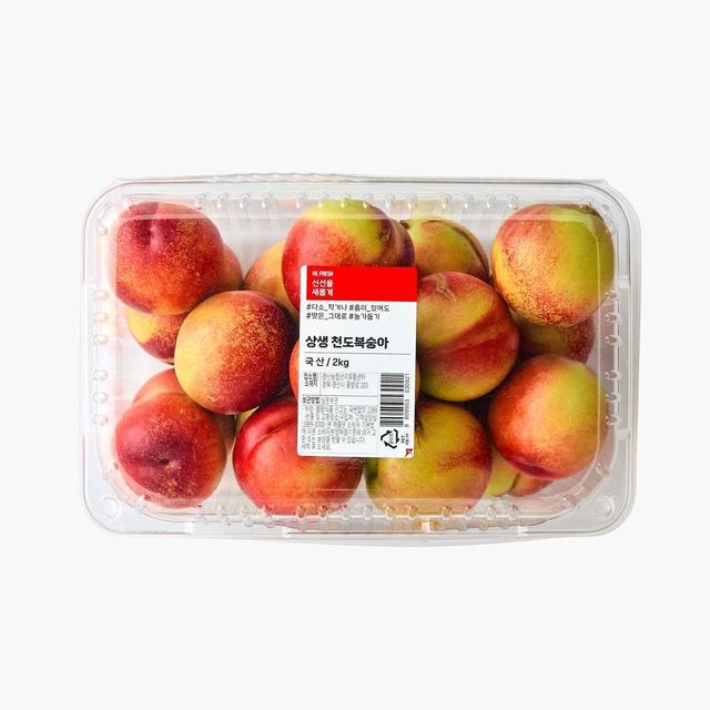롯데마트·슈퍼는 오는 19일부터 우박 피해를 입은 경북지역 농가에서 출하된 상생 천도복숭아(2㎏/팩)를 판매한다고 17일 밝혔다. / 롯데마트·슈퍼 제공