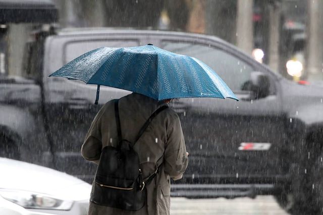 우산을 쓴 시민들이 발걸음을 옮기고 있다 / 뉴스1