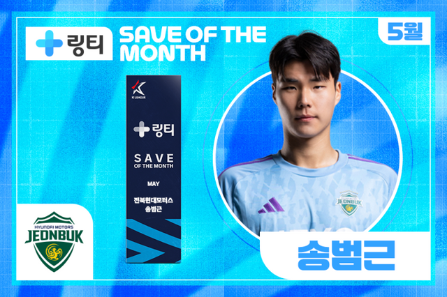 전북 현대 송범근이 2025시즌 5월 K리그 ‘의사가 만든 링티 이달의 세이브’를 수상했다.