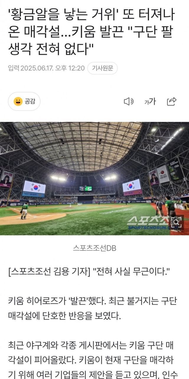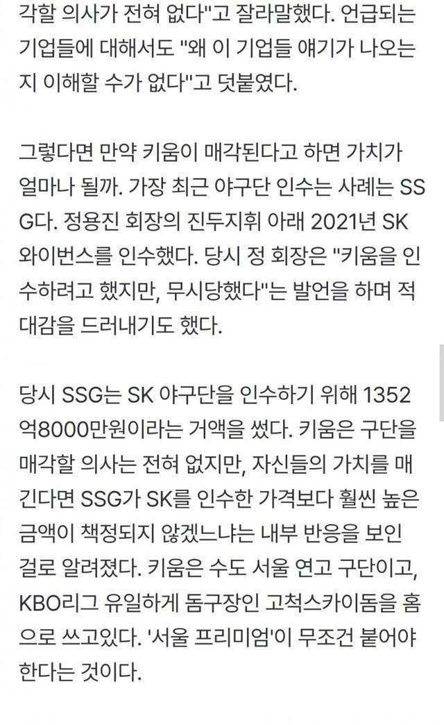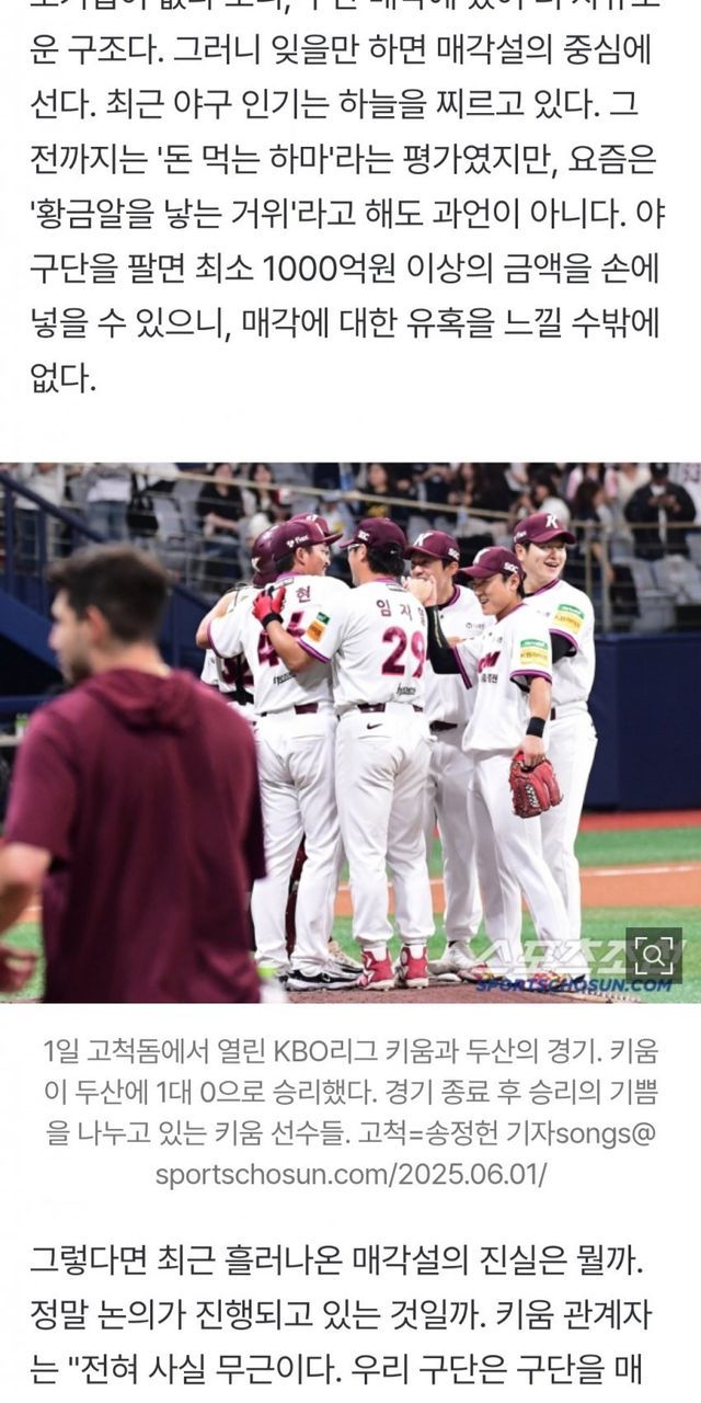 구단은 매각설을 일축하며 결국 매각 하지 않으면서 키움에는