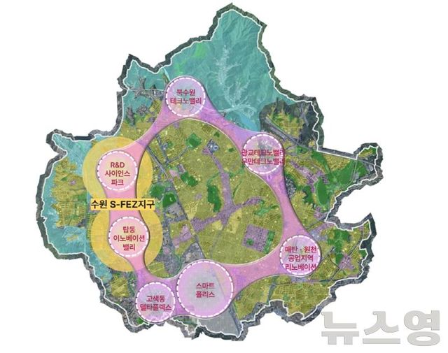 수원시 도시 발전의 밑그림인 2040 수원도시계획에 포함된 환상형 첨단과학 혁신클러스터와 경제자유구역 구상안./사진=수원시
