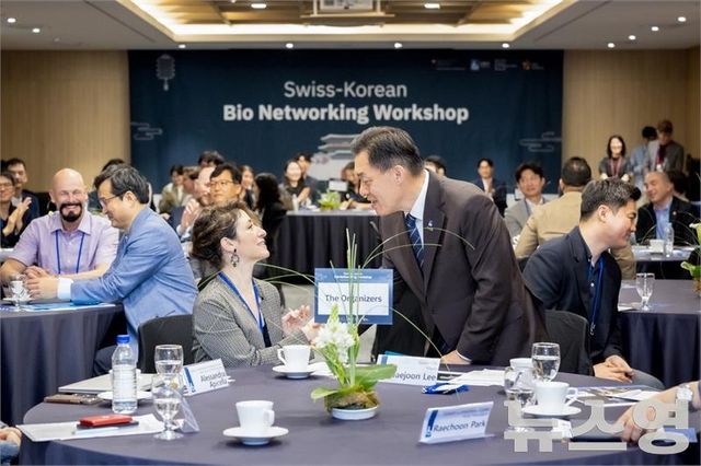 지난 5월 ‘한국-스위스 바이오 네트워킹 워크숍’에서 이재준 수원특례시장이 참석자들과 교류하고 있다./사진=수원시