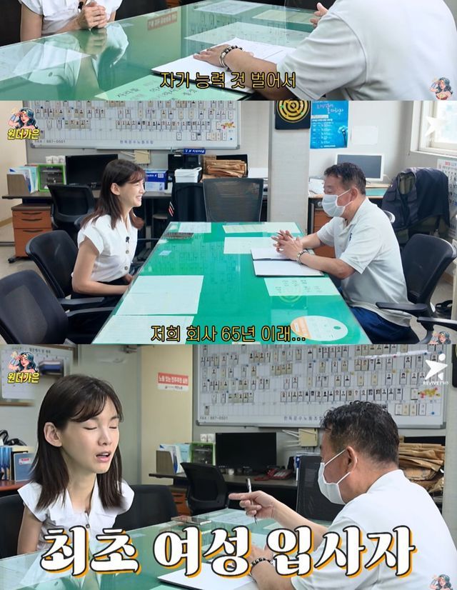 회사 측은 "저희 회사 65년 이래 최초 여성 입사자다. 지금까지 여성을 뽑지 않았다. 면접을 본 적도 없고 회사 방침이 그랬다. 최초 여성 입사자가 되는 거다"라며 정가은의 취업 의미를 더했다.