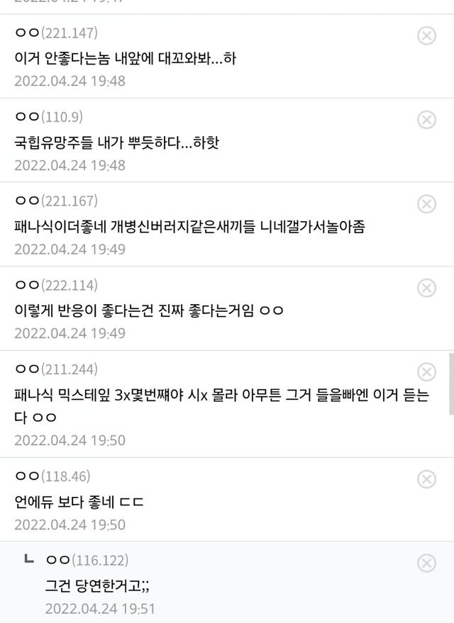 "좆도 관심없으니까 너희들끼리 놀아라"