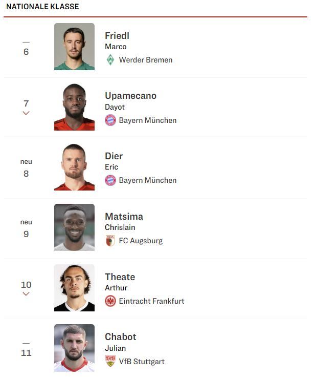 독일 축구 전문지 ‘키커’는 17일(한국시간) 2024~25시즌 분데스리가 후반기 ‘랑리스테(Rangliste)’ 센터백 부문 순위를 공개했다.