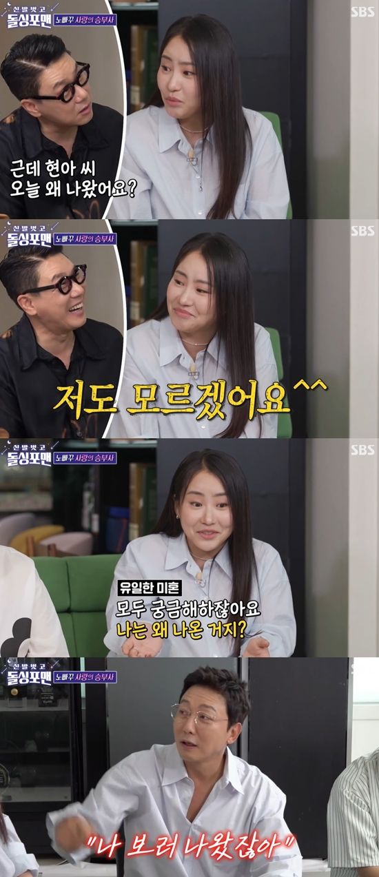 이상민이 조현아에게 "현아 씨 오늘 왜 나왔냐"라며 출연 이유를 질문했다. 조현아는 "저도 모르겠다. 모두가 궁금해한다. '나는 왜 나온 거지?' 저도 궁금하다"라고 답해 웃음을 자아냈다.
