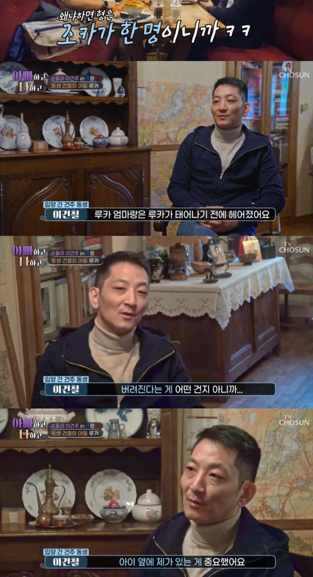17일 방송한 TV조선 '아빠하고 나하고'에는 해외입양을 간 친동생 이건철을 만나기 위해 프랑스로 떠난 이건주의 하루가 공개됐다.