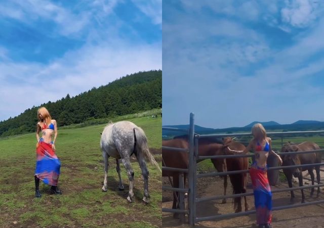 최준희는 17일 자신의 인스타그램을 통해 제주에서 바디프로필을 촬영했다고 알리며 현장 영상을 게재했다. 영상 속 그는 드넓은 초원을 배경으로 말과 함께 포즈를 취했다. 미국 텍사스를 연상케 하는 분위기와 멋진 모델 포즈가 어우러져 화보 같은 느낌을 자아냈다.