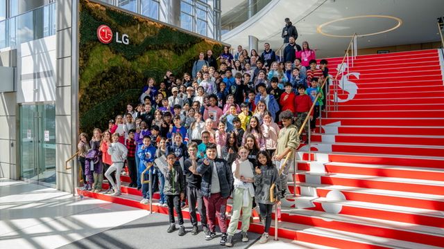 북미 사옥을 찾은 학생들이 기념 사진을 촬영하고 있는 모습. ⓒ LG전자