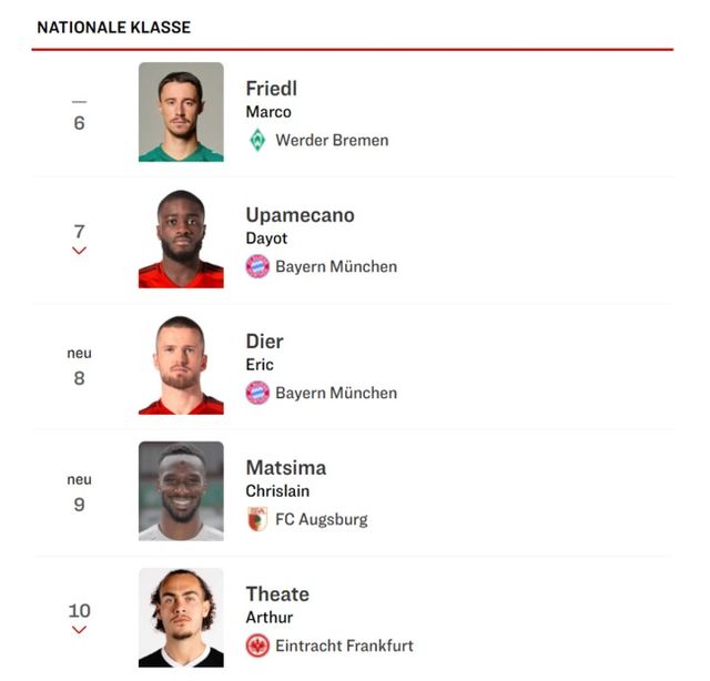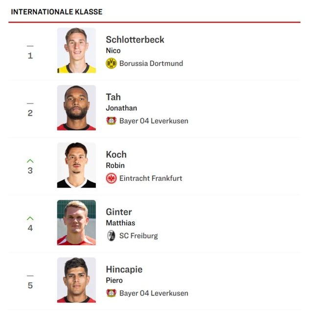 ‘키커’는 이번 시즌 분데스리가에서 단 한 명의 수비수도 월드 클래스로 분류하지 않았다. 그리고 도합 19명을 인터내셔널 클래스와 내셔널 클래스로 분류했다.