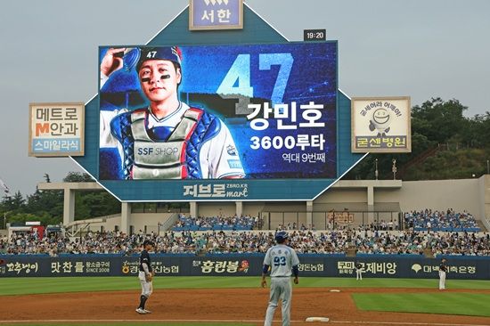 (엑스포츠뉴스 대구, 김근한 기자) 삼성 라이온즈 포수 강민호가 KBO리그 사상 최초 네 번째 FA 자격 취득을 앞둔 가운데 9번째 3600루타 달성으로 기록의 사니이임을 입증했다.