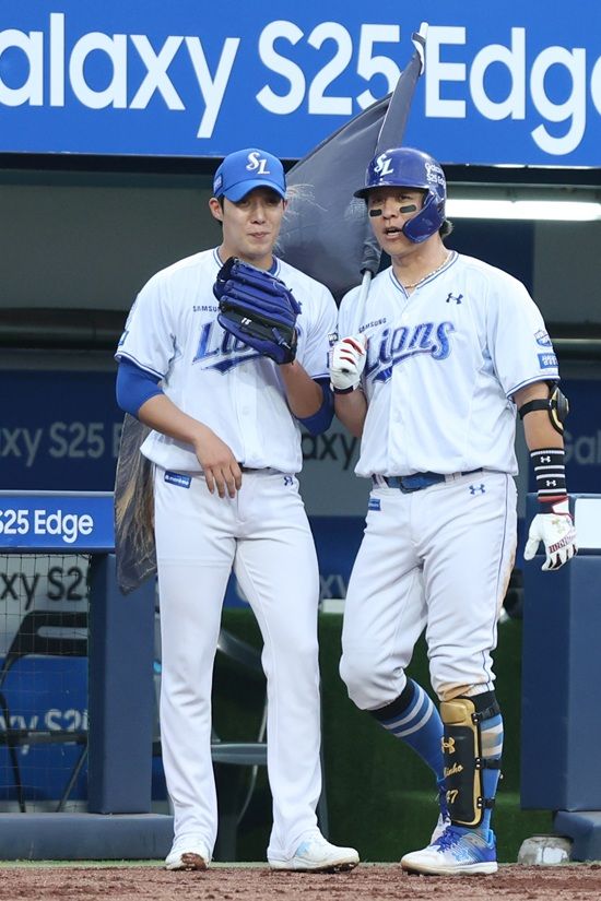 이날 경기에서 강민호는 1군 복귀전을 치른 선발 투수 원태인과 배터리 호흡도 맞춰 7이닝 무실점 쾌투까지 합작했다.