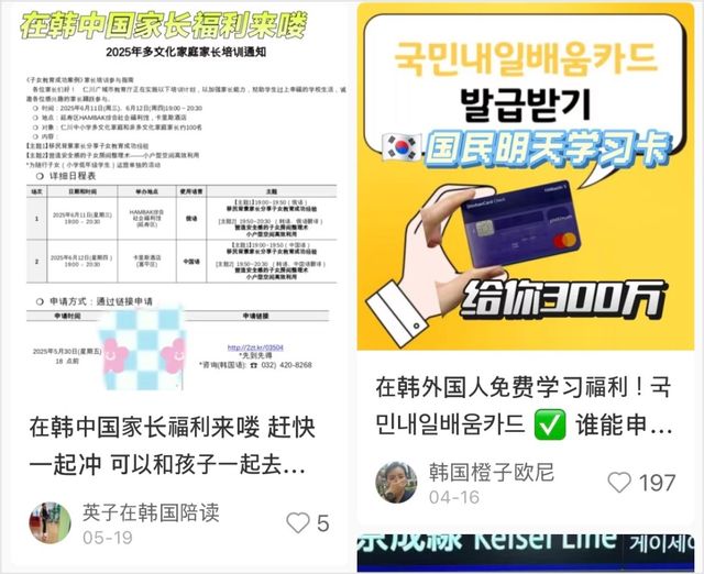 재취업준비 기간 동안 '국민 내일배움카드'를 통해 교육비를 지원받는 중국인들도 늘고 있다. 고용노동부에 따르면 외국인의 경우 체류 자격에 따라 국민 내일배움카드의 발급 여부가 결정되는데 외국인 유학생들이 자유롭게 취업이 가능한 F2 비자나, F5(영주), F6(결혼이민) 자격자 중 고용보험 가입 이력이 있는 실업 상태에 놓인 사람이라면 누구나 발급이 가능하다. 국민 내일배움카드는 최소 수강료의 절반 이상을 할인해 주는 취업지원서비스다.
