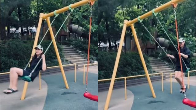 첫 번째 게시물에는 손예진이 놀이터에서 그네를 타는 모습이 담겼다. 검은 반팔 티셔츠와 반바지 차림으로 모자를 눌러쓴 그는 아이처럼 해맑게 웃으며 자유롭게 그네를 타고 있었다.