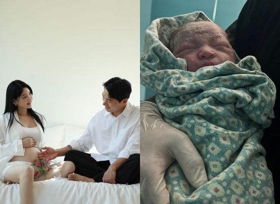 사진과 영상 속에는 갓 태어나 태지에 뒤덮여 있는 둘째 아들의 모습이 담겨 있다. 엄마 아빠를 닮은 훤칠한 이목구비가 눈길을 끈다.