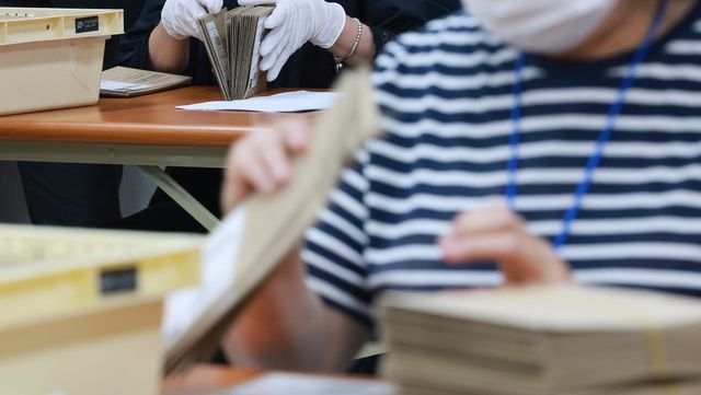 지난달 31일 서울 성동구선거관리위원회에서 투표용지가 담긴 회송용 봉투 수량을 확인하고 있는 모습.(기사에서 언급된 사건과 관련없는 장소의 사진입니다.) / 연합뉴스