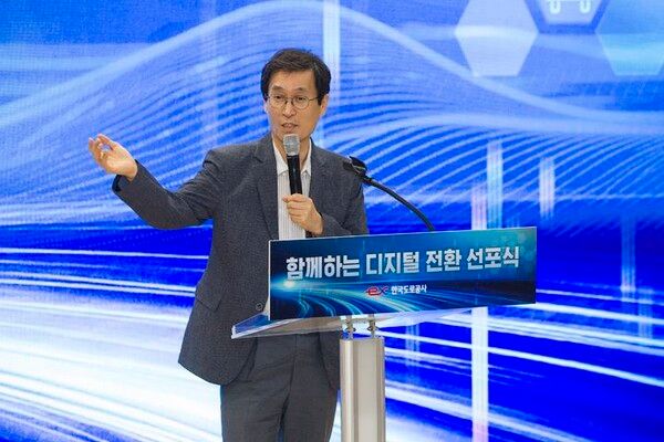 한국도로공사는 18일 경북 김천 본사에서 '함께하는 디지털 전환 선포식'을 개최하고 업무 전반에 디지털 신기술을 적극 도입하겠다고 선언했다.