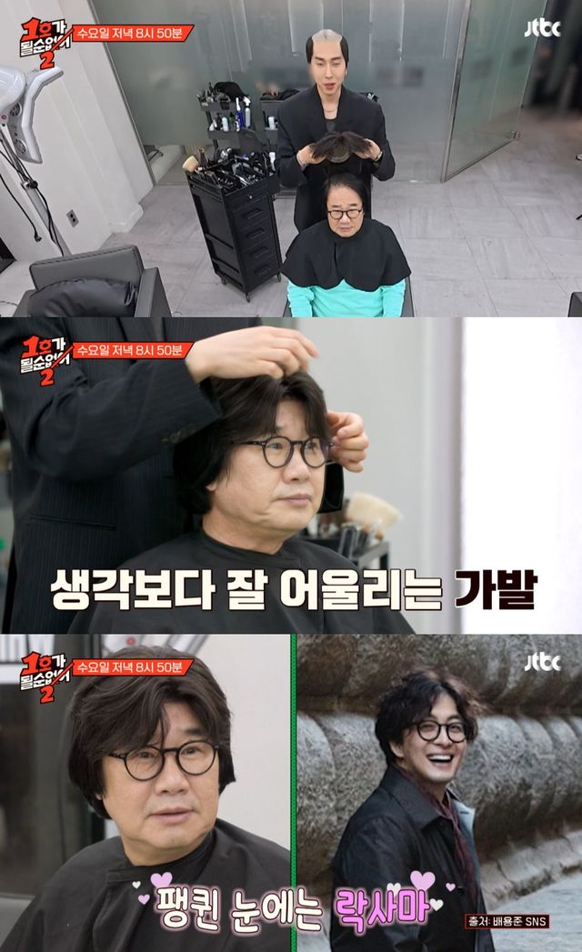 가장 잘 어울리는 스타일링에 환호를 자아낸 최양락에 팽현숙은 "배용준 같다. 어울린다"며 애정을 드러냈다.