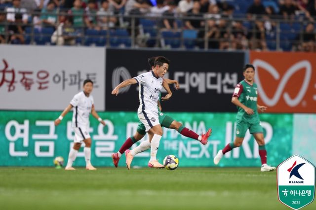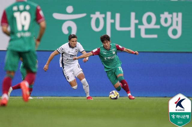공격 작업이 원활하지 않았던 대전은 전반 21분 프리킥 상황에서 윤도영이 페널티 박스로 붙인 볼을 주민규가 헤더로 연결했지만, 골대를 벗어났다.