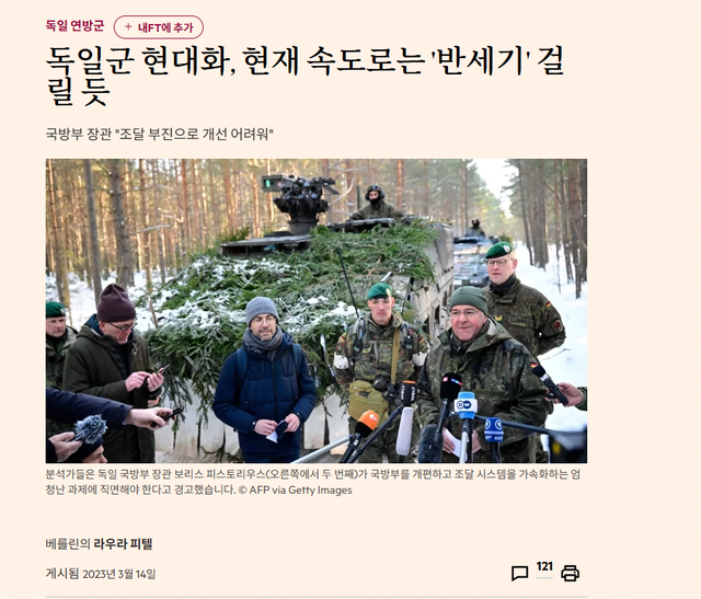 2023년 독일 국방부 장관은 직설적으로 "이대로가면 독일군 현대화는 반세기는 걸린다"고 발언함