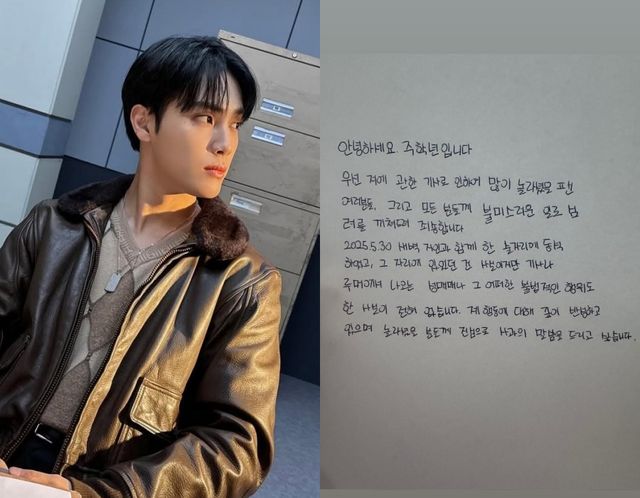 그룹 더 보이즈에서 탈퇴한 주학년이 직접 손글씨로 입장을 전했다.