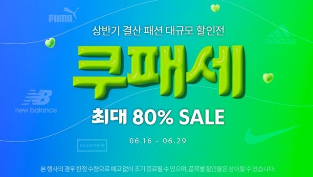 쿠팡은 오는 29일까지 '쿠패세(쿠팡패션세일)'을 열어 여름 패션 인기 브랜드를 최대 80% 할인된 가격에 선보이겠다고 19일 전했다.