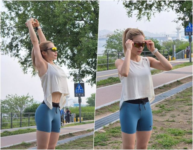 사진 속 심으뜸은 장시간 달리기를 위해 편안한 착장을 선택한 모습이다. 그는 민소매 크롭톱과 짧은 레깅스를 매치했다. 특히 크롭톱을 입고 스트레칭을 하는 모습에서 가녀린 허리 라인이 드러나 눈길을 사로잡기도.