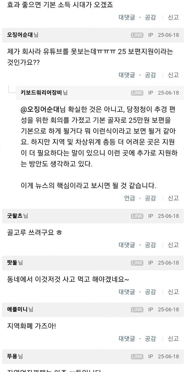 25만원 지원금에 한우 먹을 생각하는 클리앙
