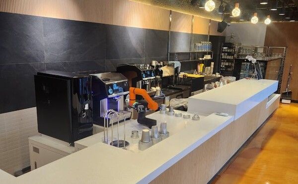 로봇은 한화로보틱스 로봇 'HCR3'를 사용해 로봇 암이 커피머신과 자동 연동돼 자추출·이동 과정을 수행하도록 했다.