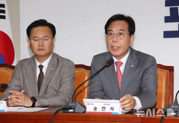 뉴시스 보도에 따르면, 송 원내대표는 이날 유상범 원내수석부대표와 함께 우원식 국회의장 예방을 마치고 나온 뒤 기자들과 만나 "다음 주 김민석 국무총리 후보자에 대한 인사청문회가 예정돼 있는데 문제가 많다. 이런 쪽에 우리가 힘을 모아나가야 한다"며 이같이 밝혔다.