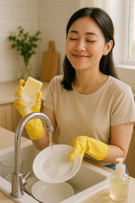 많은 사람이 설거지바는 세척력이 약할 것이라 걱정하지만, 실제로는 그렇지 않다. 코코넛유나 소듐코코일이세티오네이트(SCI)처럼 기름을 분해하는 성분이 들어간 제품은 액체세제 못지않은 세정력을 보인다. 특히 스펀지나 수세미에 비누를 문질러 거품을 낸 후 사용하는 방식이 익숙해지면, 기름기 많은 그릇도 무리 없이 닦인다. 단, 거품이 적은 제품은 상대적으로 헹굼이 더 쉬워 오히려 깔끔하게 마무리된다.