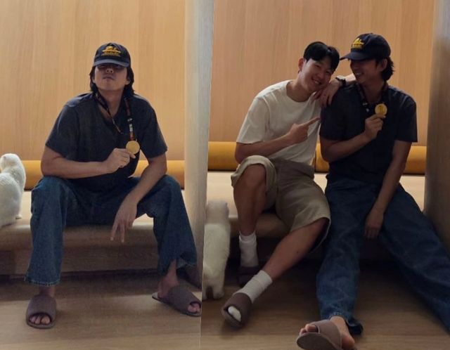 공개된 사진 속에서 공유는 목에 UEFA 유로파리그(UEL) 우승 메달을 걸고 환한 미소를 짓고 있다. 이어 손흥민과 나란히 앉아 다정한 포즈를 취하고 있다. 두 사람은 개구장이 형제 같은 모습으로 보는 이들의 미소를 짓게 한다.