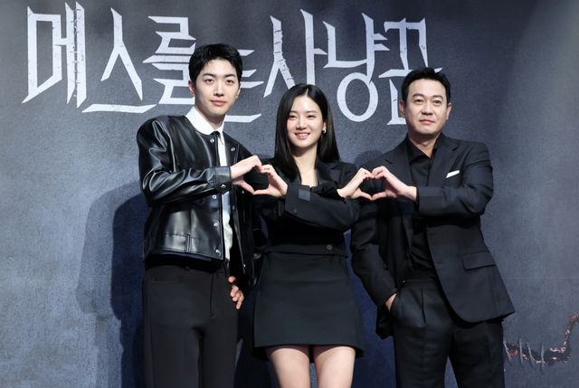 지난 12일 서울 구로구 라마다서울신도림호텔에서 열린 STUDIO X+U 새 미드폼 드라마 '메스를 든 사냥꾼' 제작발표회에 참석한 배우들. (왼쪽부터)배우 강훈, 박주현, 박용우. / 뉴스1