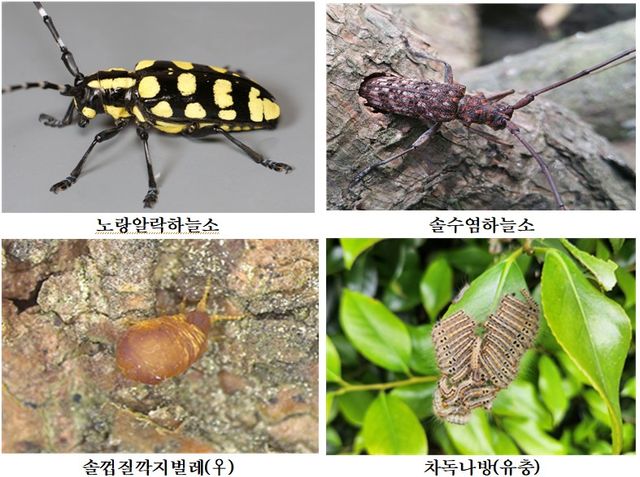 제주도 내 산림과 가로수 등에 피해를 주는 주요 산림병해충. 제주도 세계유산본부 제공