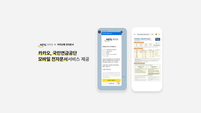 카카오는 국민연금공단과 협업해 모바일 전자문서 서비스를 제공한다고 19일 밝혔다.