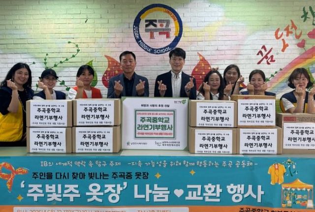 [와이뉴스] 남양주시는 지난 13일, 주곡중학교 학부모회가 자원 재활용 행사 ‘주빛주 옷장’을 통해 마련한 라면 10박스를 북부희망케어센터에 전달했다고 밝혔다.