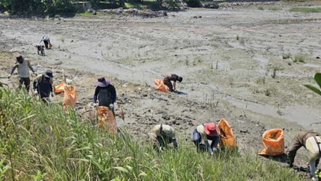 세계 100대 유해종으로 지정된 유해생물 갯줄풀을 제거하고 있는 모습. 기사 이해를 돕기 위한 자료 사진 / 다도해해상국립공원서부사무소 제공