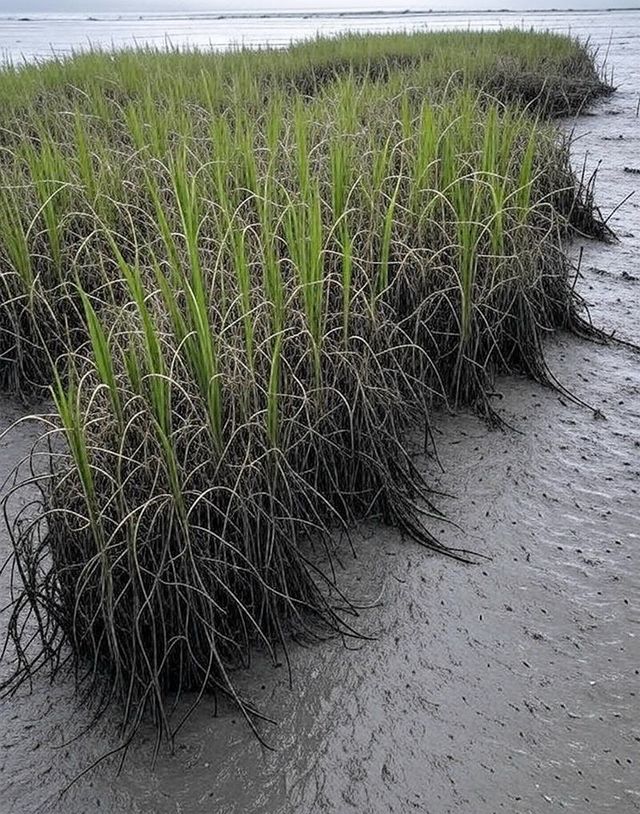 유해생물인 갯줄풀 모습을 AI로 제작한 이미지. 실제 모습과 다소 차이가 있을 수 있음. 갯줄풀은 국내에서 유해 해양생물이자 생태계교란 생물로 지정된 유해 식물이다. 약 100~250cm까지 자라며 갯벌에 침입해 토종 갯벌 식물과 조개류, 게 등 생물의 서식지를 파괴하고 갯벌의 육지화를 유발한다. 갯줄풀을 관리하기 위해 물리적 제거, 화학적 처리 등이 시도되지만 100% 완전히 박멸하는 것은 현실적으로 어려운 실정이다.