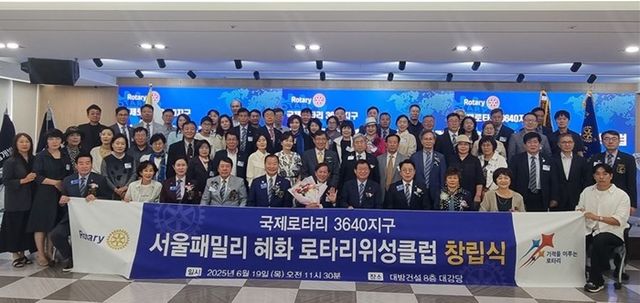 [전국=위키트리 최학봉 선임기자] 국제로타리3640지구 소속 서울패밀리로타리클럽은 6월 19일 서울시 강서구 대방건설 8층 대강당에서 서울패밀리혜화로타리위성클럽의 창립식을 개최했다.