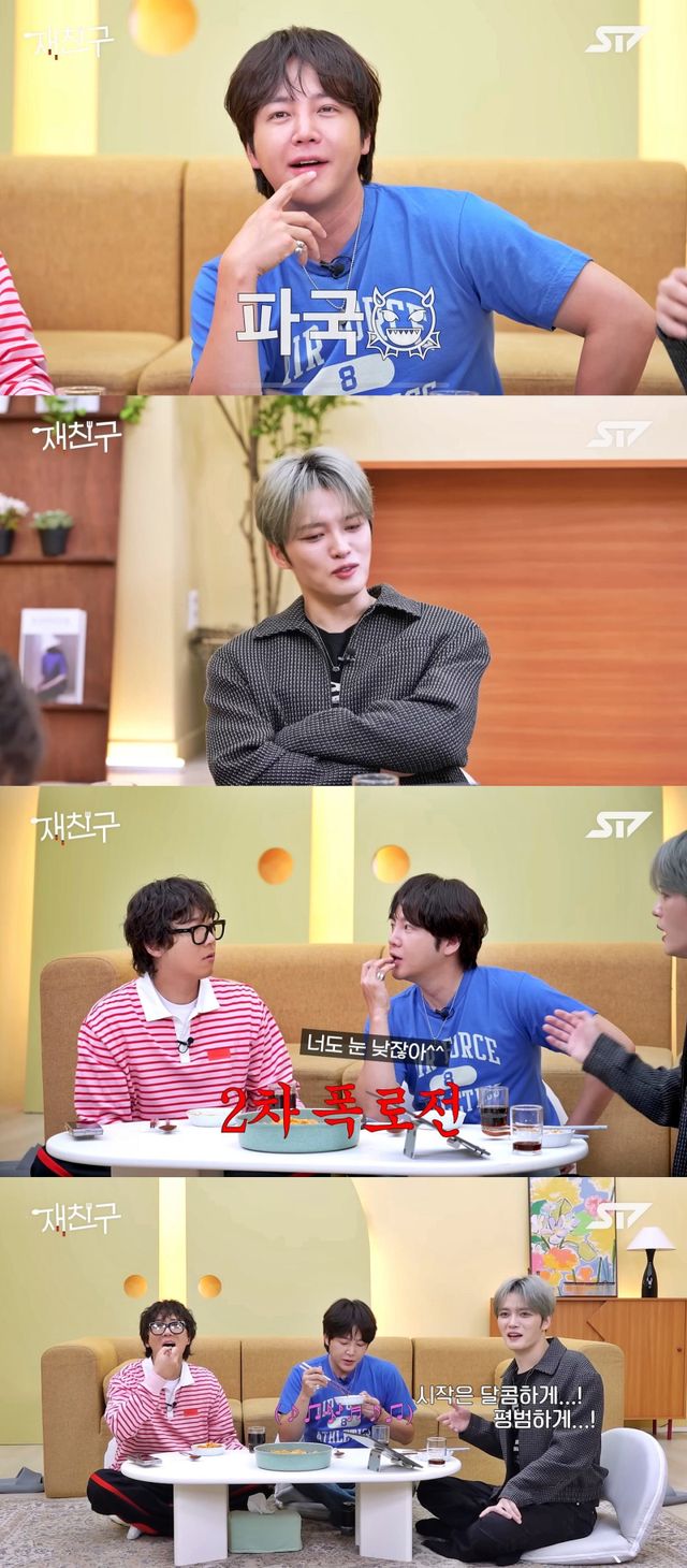 19일 김재중이 출연하는 유튜브 채널 ‘재친구’에는 가수 이홍기, 배우 장근석이 게스트로 출연했다. 세사람은 실제 ‘찐친’으로 이날 서로에 대한 폭로전을 이어갔다.